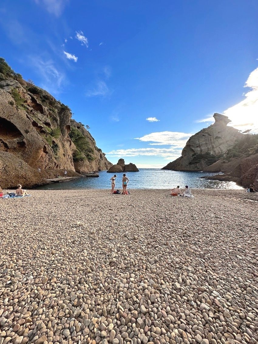 La Plage de la calanque de Maubois à Agay. Petite plage secrète de la Côte d'Azur, la plage de la calanque de Maubois fait partie de nos incontournables. Nichée au pied des roches de l'Estérel, célèbres pour leurs formations rocheuses rouges, cette plage offre une eau d'une beauté remarquable. Nous sommes absolument charmés par sa naturalité, où les roches se mêlent harmonieusement à la végétation, créant ainsi un véritable sanctuaire. Cette crique a une aura magique grâce à son calme ressourçant et apaisant.