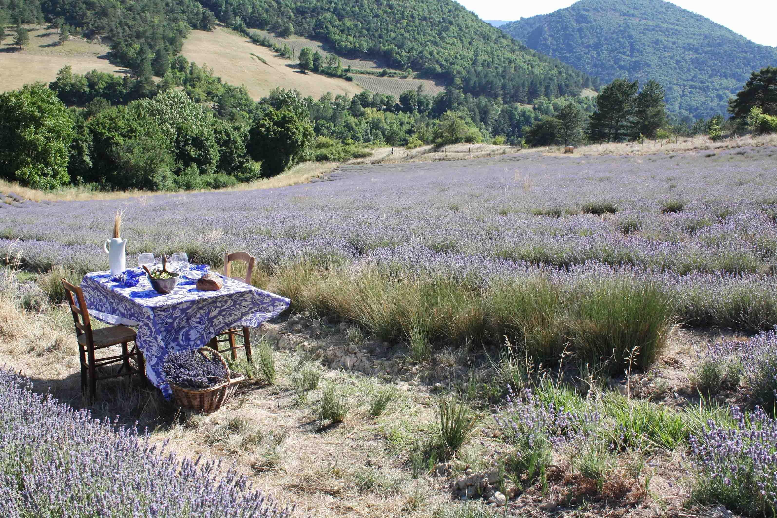 Let us take you to the famous Provence lavender fields. A favorite place and a source of inspiration, lavender fields are a magical place for us. We enjoy yearly the sound of cicadas and the sight of these magnificent, emblematic purple flowers. Lavender fields are calming and our souls are resting wandering within the flowers. Far away from tourist spots, we keep our favorite places secret. We highly recommend a visit to the charming village of Chamaloc, located in the Drôme. It's a true haven of peace, where the charm of the South blends with nature. Visiting the lavender fields promises romance and wonder, thanks to the sweet scent of lavender.